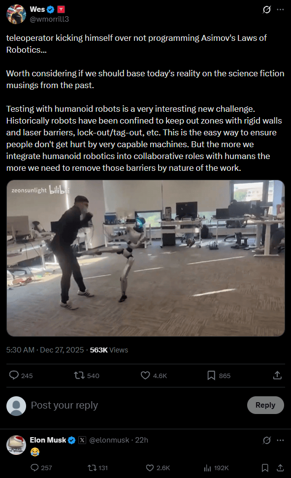 宇树机械人测试时俄然踹工程师一脚!马斯克笑